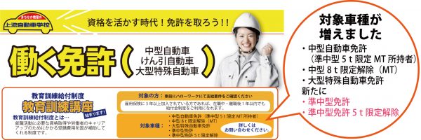 必要な資格をとってキャリアアップしたい!でも、必要だけど費用もかかる… そんなお考えの方のために、条件が合えば国で支援してくれる制度があります!!「教育訓練支援給付金」です。それは働く方の主体的な能力開発の取組みや中長期的なキャリア形成を支援して、雇用の安定と再就職の促進を図ることを目的としたものです。厚生労働大臣が指定したコースを受講。修了後に申請すると、入学金・教習料金の20%(最大10万円)までが支給される制度です。※受講費用は個人負担が原則です。会社が費用の一部または全部を負担した場合は対象になりません。