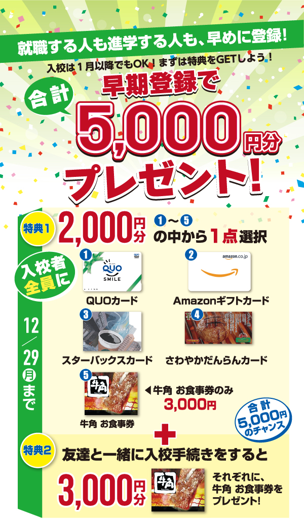 12月29日までの早期登録で合計5,000円分のプレゼント!