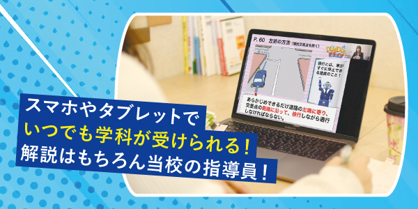 場所も選ばないため、自宅でも!自動車学校内のコンピュータ室でも!24時間、オンライン学科を受講できます。