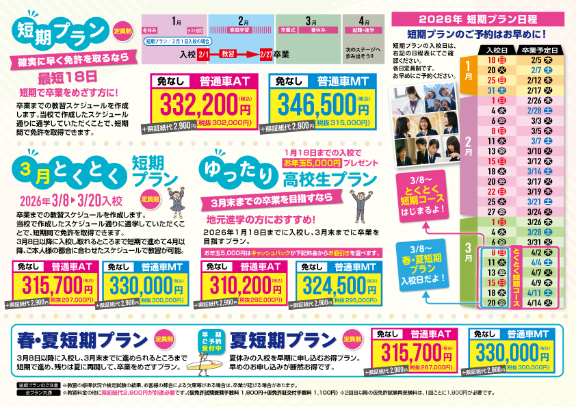 〈高校3年生向け 免許取得プラン〉予約受付中!