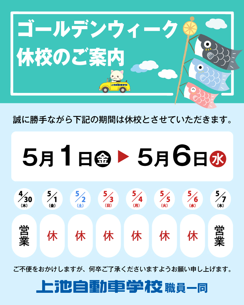 ゴールデンウィーク休校のお知らせお知らせ