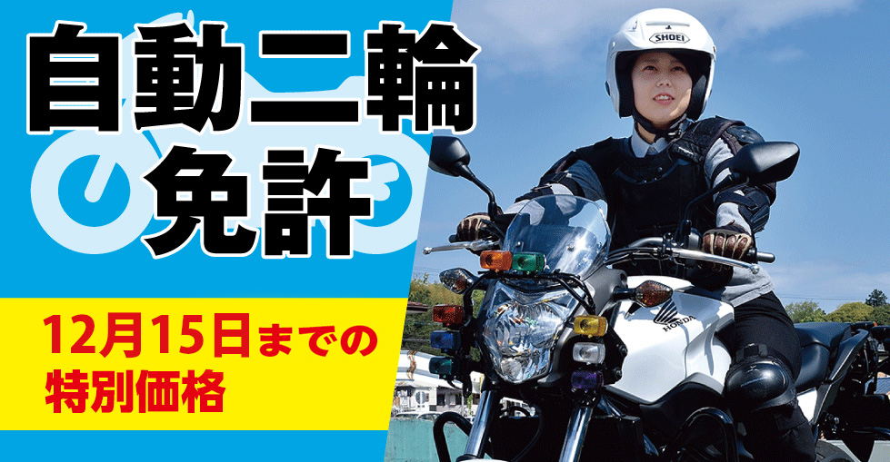 12月15日までならなんと!通常よりお安く二輪免許が取得できます!