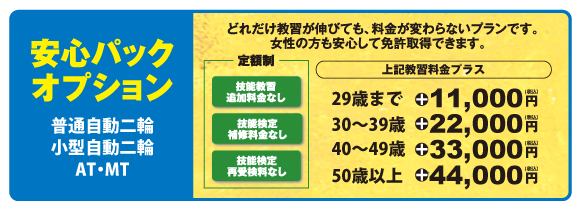 | 普通自動二輪AT(普通車・中型。準中型・大型免許保持) | 122,650円(税込)(税抜 111,500円) |