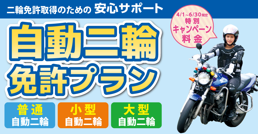 自動二輪免許プラン【4月1日から6月30日までの限定特別キャンペーン】
